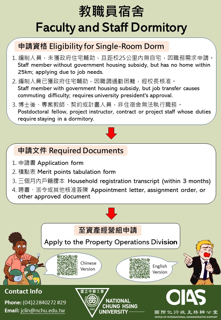 教師及職員申請職務宿舍,所需文件: