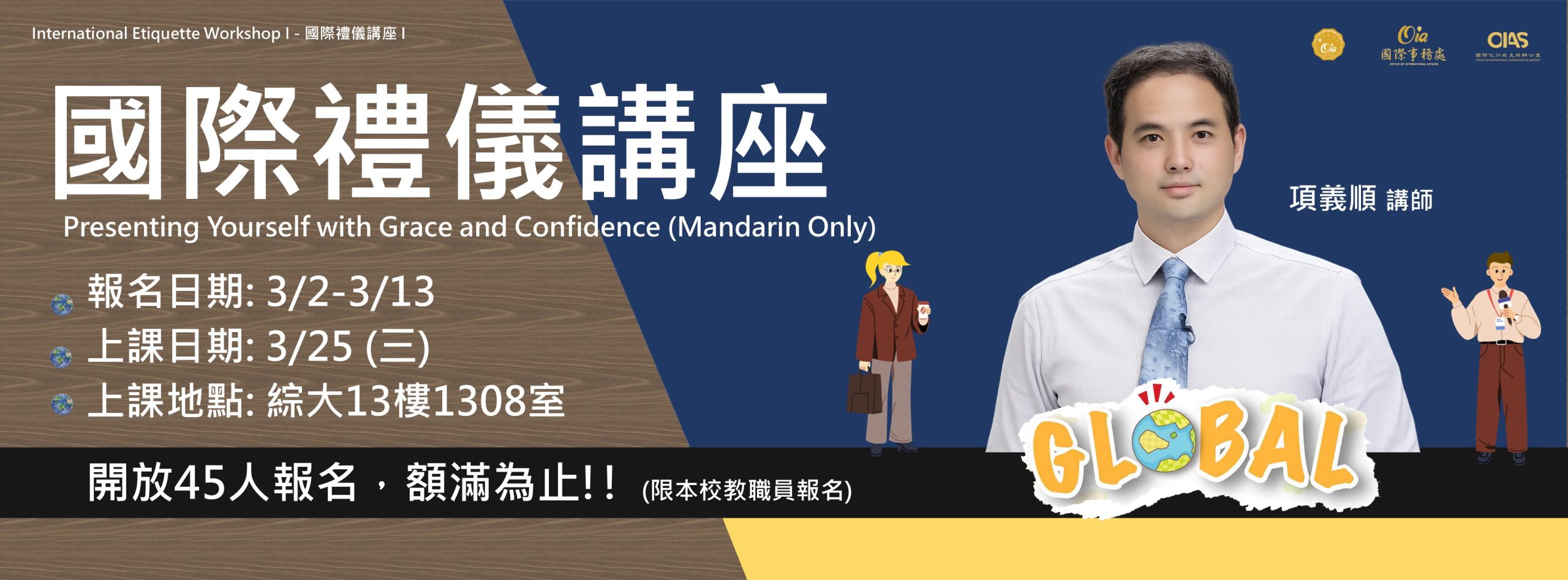 To enhance faculty and staff’s capabilities in international communication and foreign guest reception, we are honored to invite Ambassador Chen Chia-Yen from the Ministry of Foreign Affairs to deliver a special lecture on International Etiquette. Drawing on his extensive diplomatic experience, the lecture will provide practical insights on conducting oneself with professionalism in global settings.