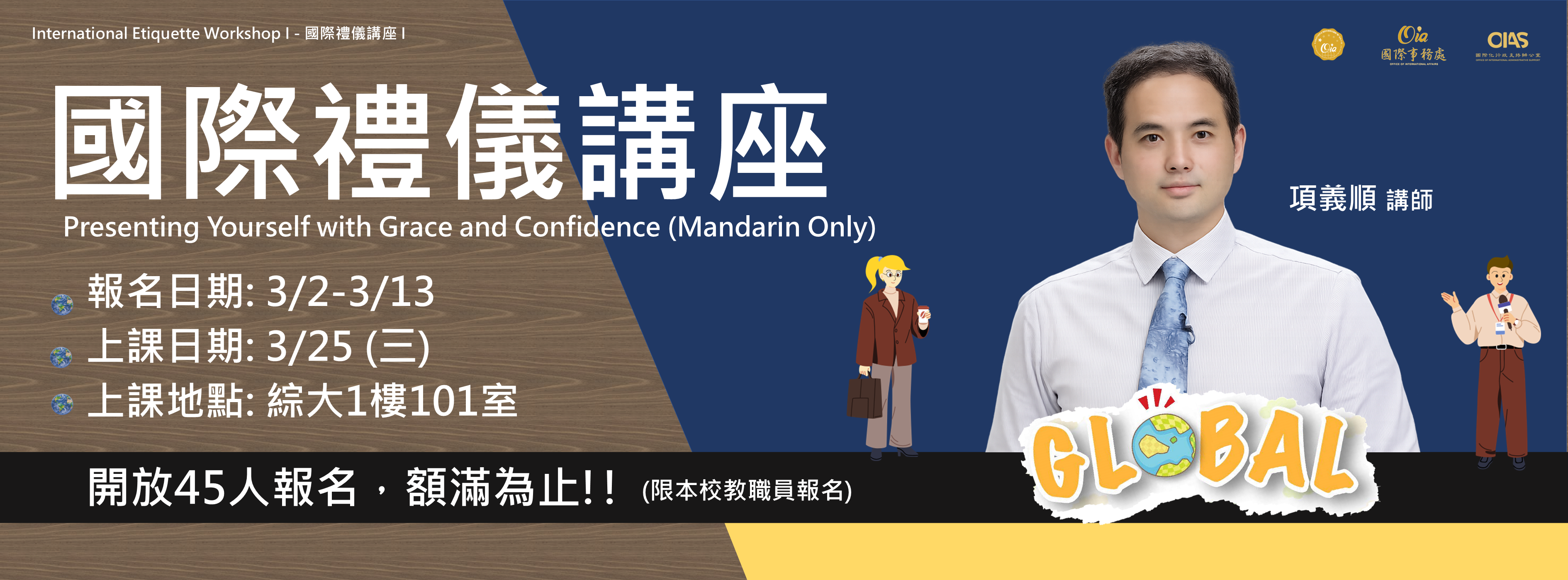 115年國際禮儀講座 I:運用禮儀展現優雅魅力 International Etiquette Workshop I: Presenting Yourself with Grace and Confidence (Mandarin Only)